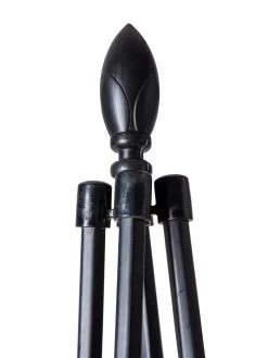 This perfect pot trellis with a classic teardrop topper adds a touch of grandeur without a luxury price tag. A lovely showcase for container-loving vines like mandevilla, and sweet pea, and black-eyed Susan vine, the 4 stakes provide a good number of skyward routes, and helpful swirl patterns on the stakes help vines grow and stay attached. Poly-coated steel frame and UV-stabilized plastic connectors are durable enough for year-round use. String with lights in winter to keep containers merry and bright through the dormant months. Super easy, no-tool assembly.