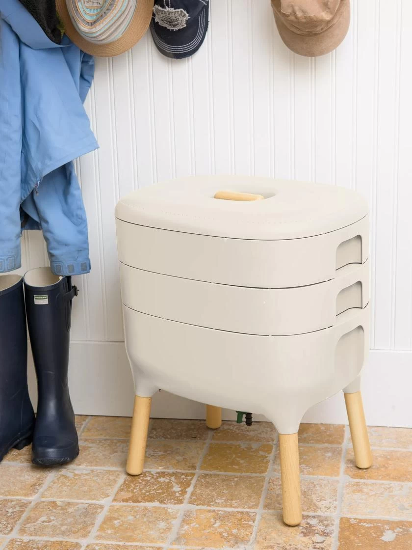 Let worms do the work, transforming your food scraps into nutrient-rich fertilizer. It’s a fun project that’s good for the earth, too, by keeping food scraps out of the landfill. The stylish shape and choice of colors make the Worm Farm Composter at home in a kitchen, mudroom, hallway or pantry. Once the process gets underway you can add up to a half pound of scraps per day to the worm composter, about the average food waste for a family of four. When setting up your worm composter keep in mind that 68 degrees F. is the ideal temperature.
