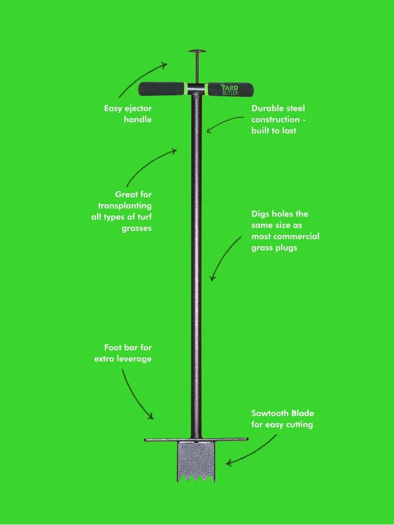 The grass is always greener at your house thanks to the sod plugger. Plant, repair, or remove lawn and turf with ease. The long handle with an easy ejector lets you stand upright, while the foot bar gives you extra leverage to cut through even the peskiest grass roots. Heavy-duty steel gets welded together to craft this lawn saver so you can stomp on that foot bar for years to come.